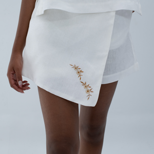 Falda Short Calamar: La practicidad del short con el estilo de una falda. Libertad de movimiento con un diseño llamativo 100% lino